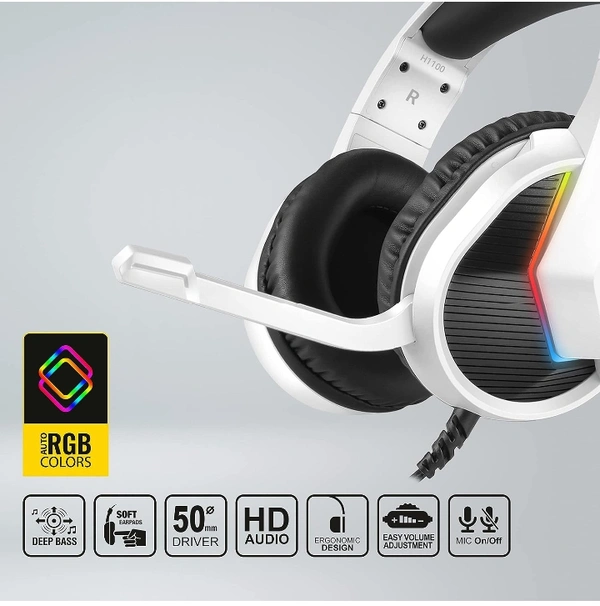 Ant Esports H1100 Pro RGB Wired Over Ear Gaming Headphones for PC/ PS4 / PS5 / Xbox One / Switch1 with mic Frost White