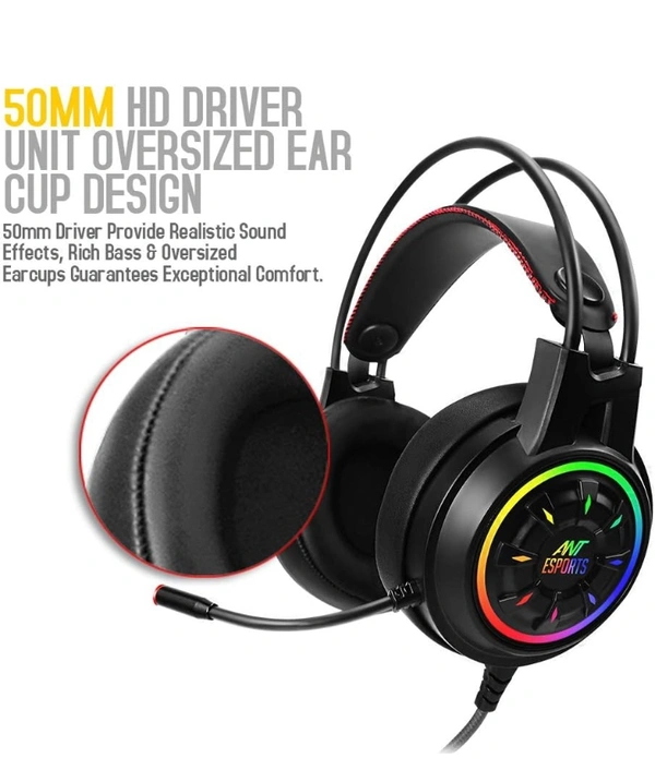 Ant Esports H707 HD RGB Wired Gaming Headset | Noise Cancelling Over-Ear Headphones with Mic for PC / PS4 / Xbox One/Nintendo Switch/Mac
