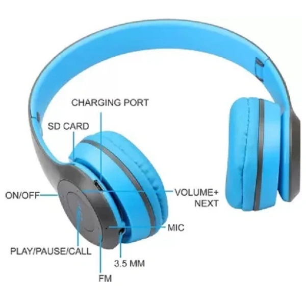 Bluetooth HEADPHONE FM, Mic Bluetooth Headset Bluetooth Headset (BLUE, On the Ear)