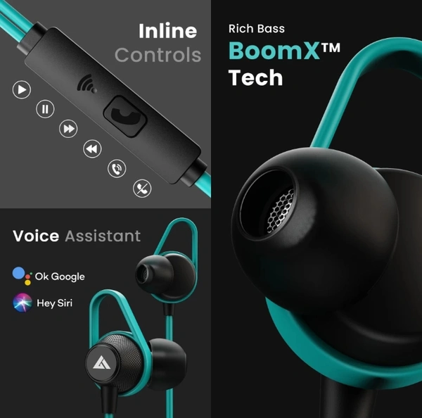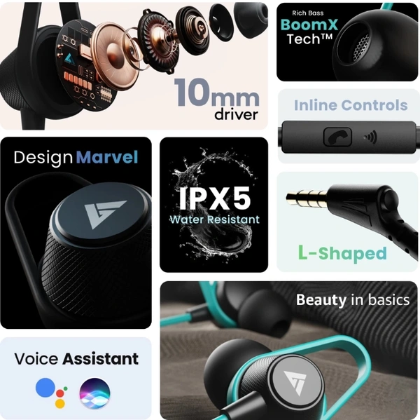 Boult Audio Loop2 with 10mm Drivers, BoomX Rich Bass, In-line Controls, Soft Silicon Snugfit Wired Headset