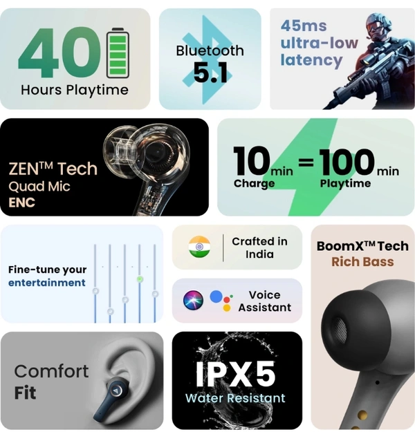 Boult Audio X50 with 40Hr Battery, Quad Mic ENC, 45ms Ultra Low Latency, Made In India, 5.1 Bluetooth Headset