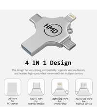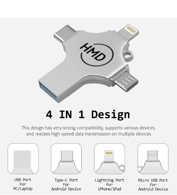 hmd 1 TB 4 in 1 Pen Drive For iOS & Android Compatible with iPhone, iPad, Android, PC 1 TB OTG Drive (Black, Type A to Type C)